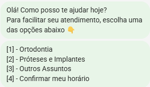 Quando o Menu de Opção é inserido dentro do construtor do chatbot ele será exibido dessa maneira,